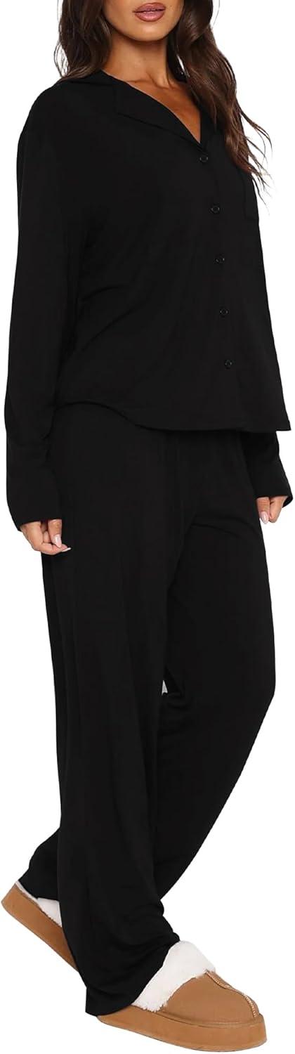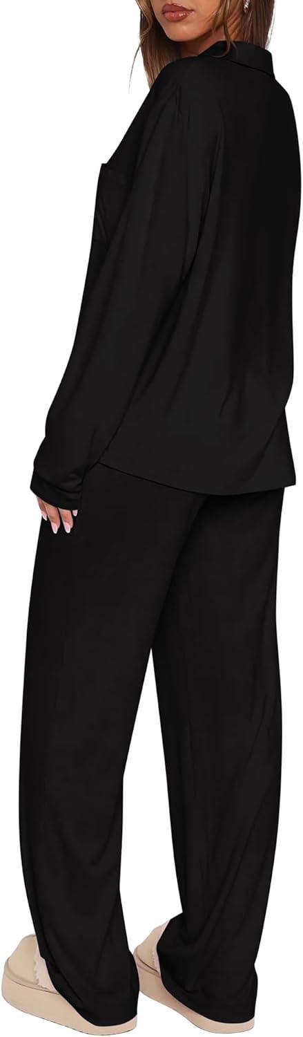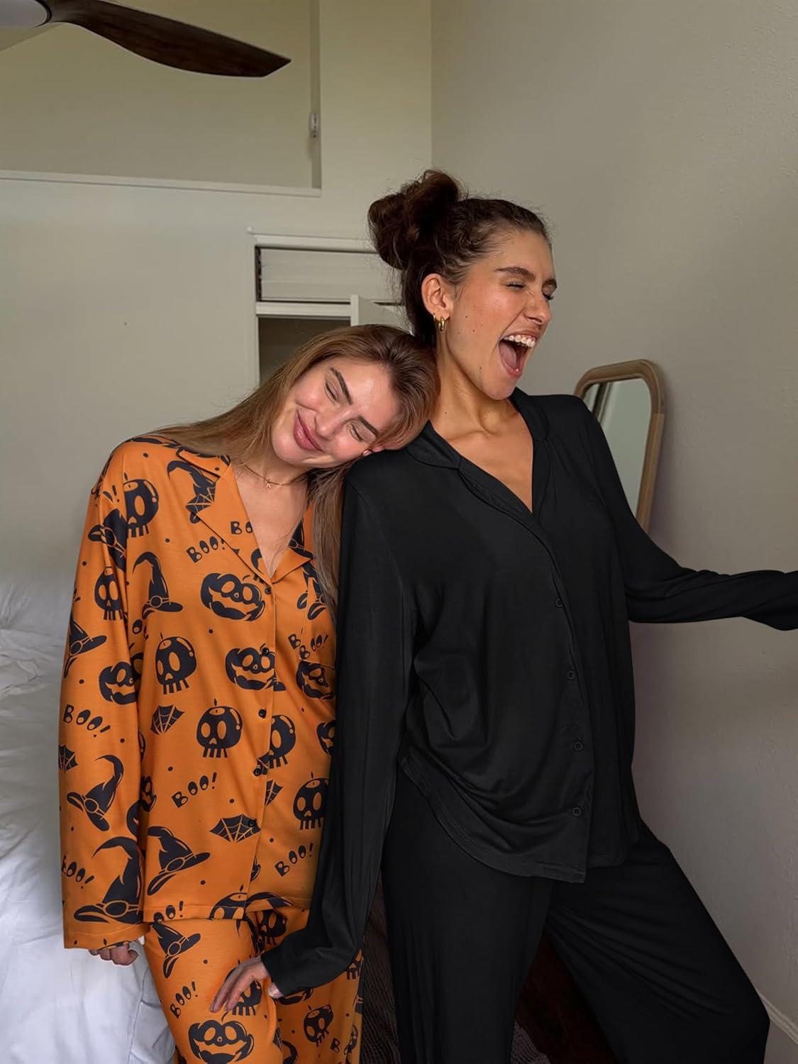 REORIA Funny Halloween Pajamas Women Button Up 2 Piece Pajama Set Sleepwear(Black)