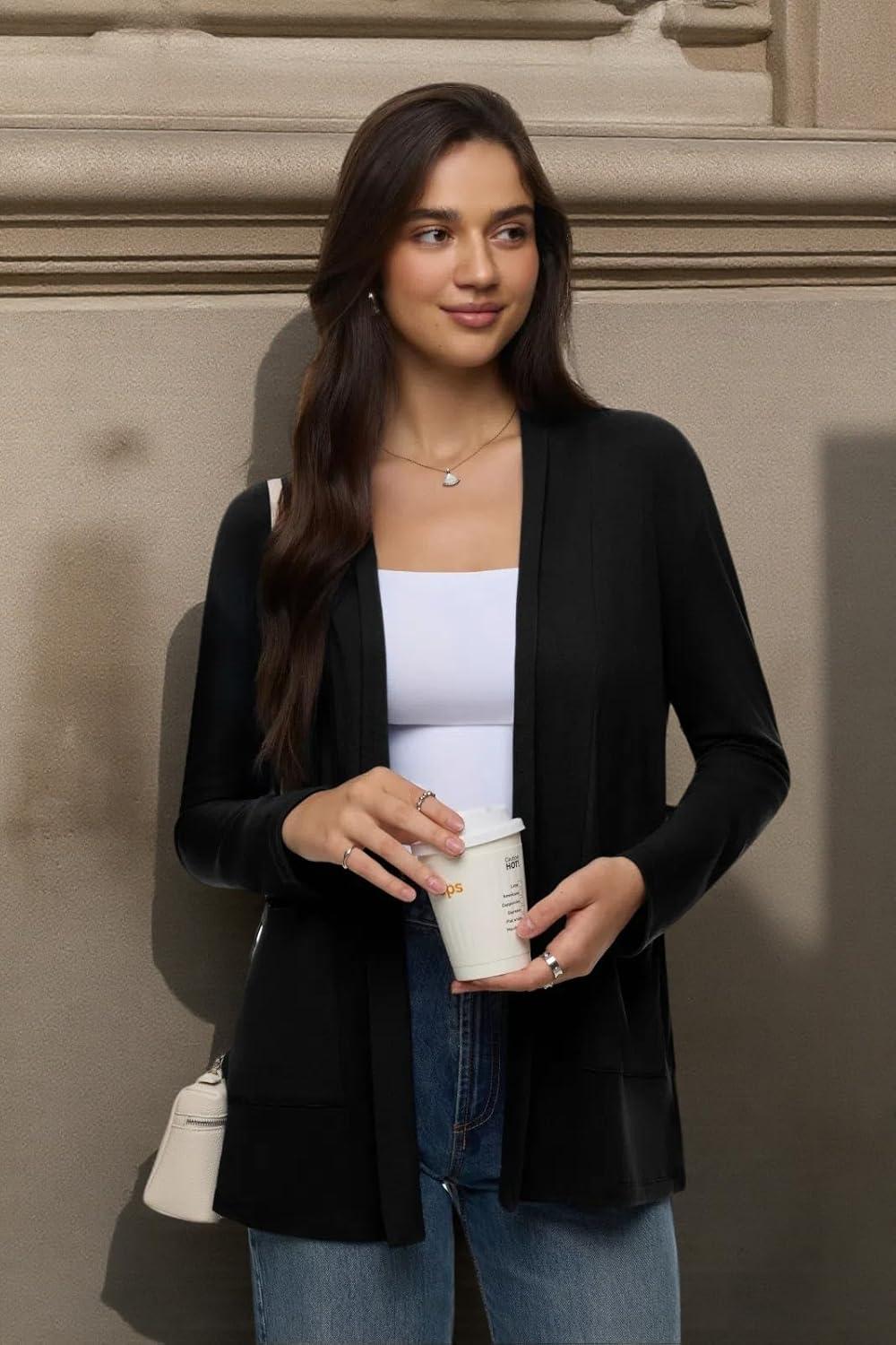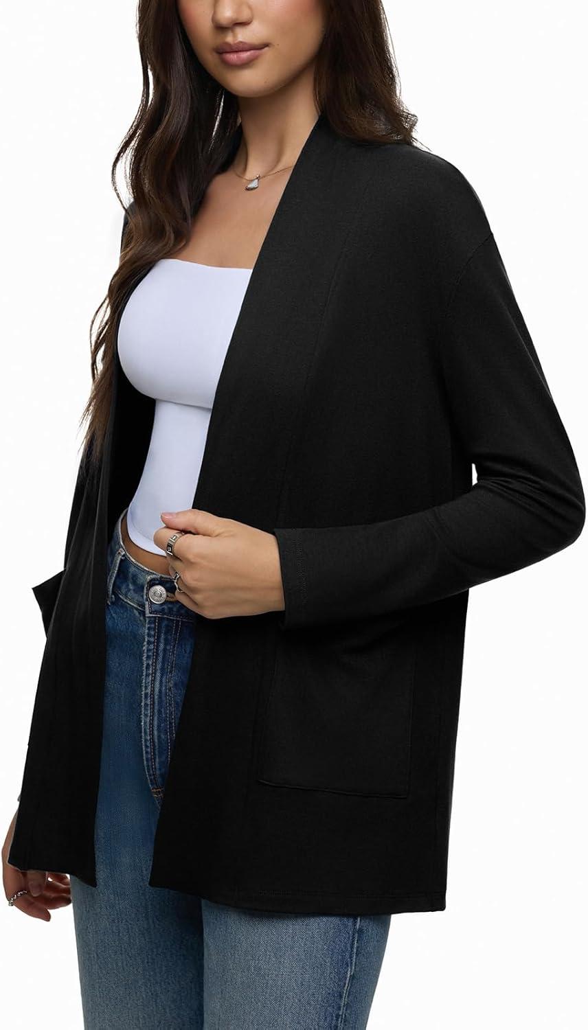 REORIA Women's Casual Lightweight Knit Open Front Cardigan Sweater with Pockets 2025 Fall Fashion(Black)