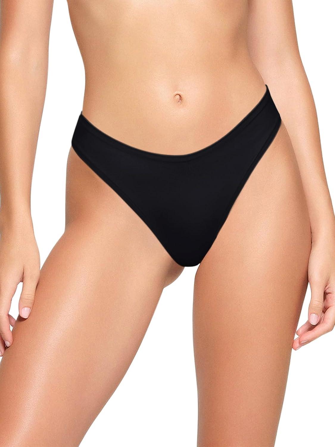 REORIA Womens Cotton Seamless Thongs Panties for Women No Show Breathable Underwear 5 Pack(Black 5 Pack)