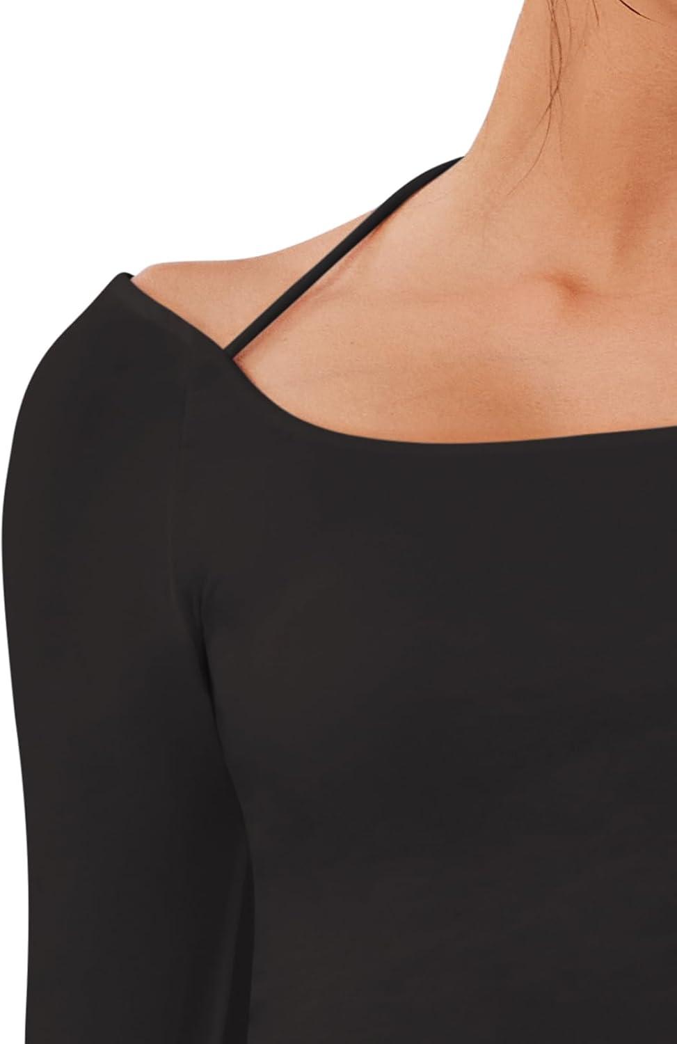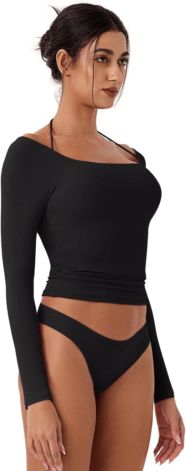REORIA Women’s Long Sleeve Square Neck Top Double Layer Reversible Sexy Crop Tops 2025 Fall/Winter Designer Collection(Black)
