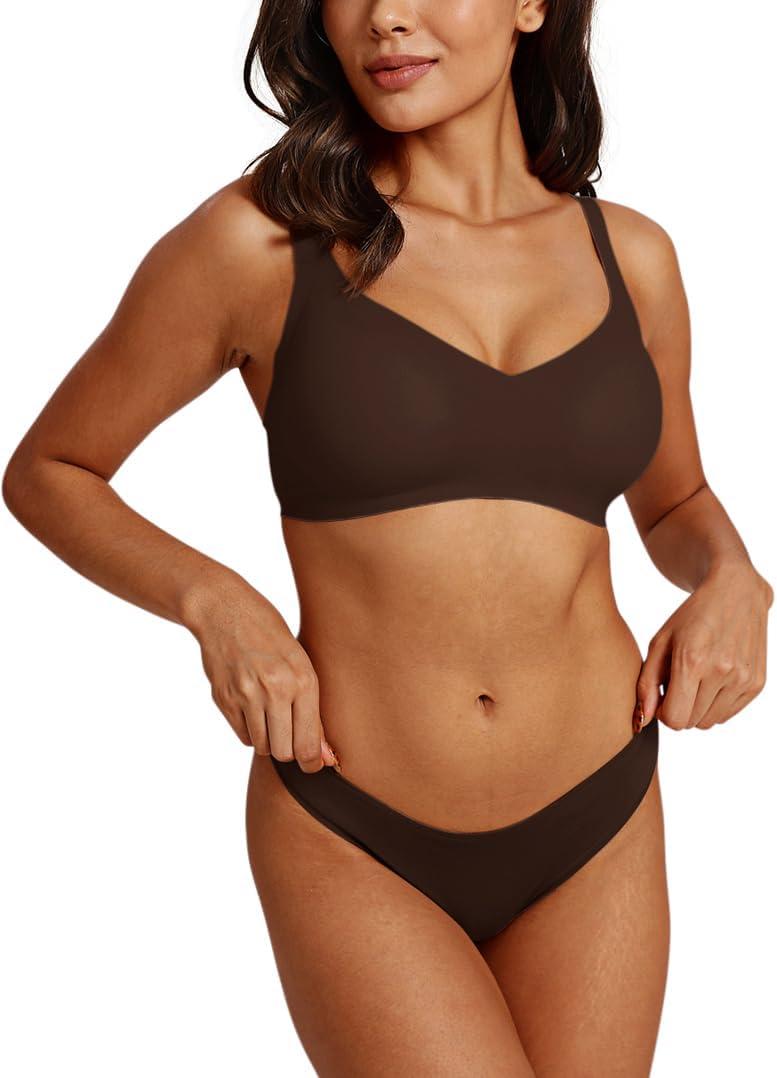 imageREORIA Womens Lounge Comfortable Adjustable Everyday Bra FullCoverage Padded Seamless Wireless Bras for WomenCocoa