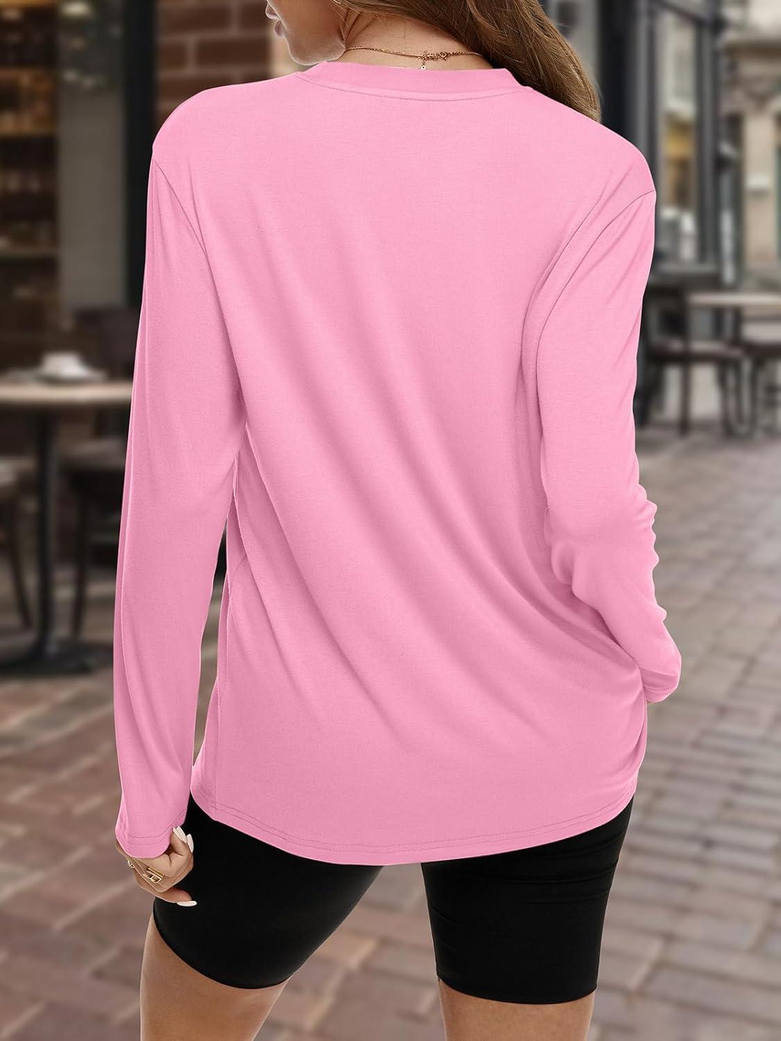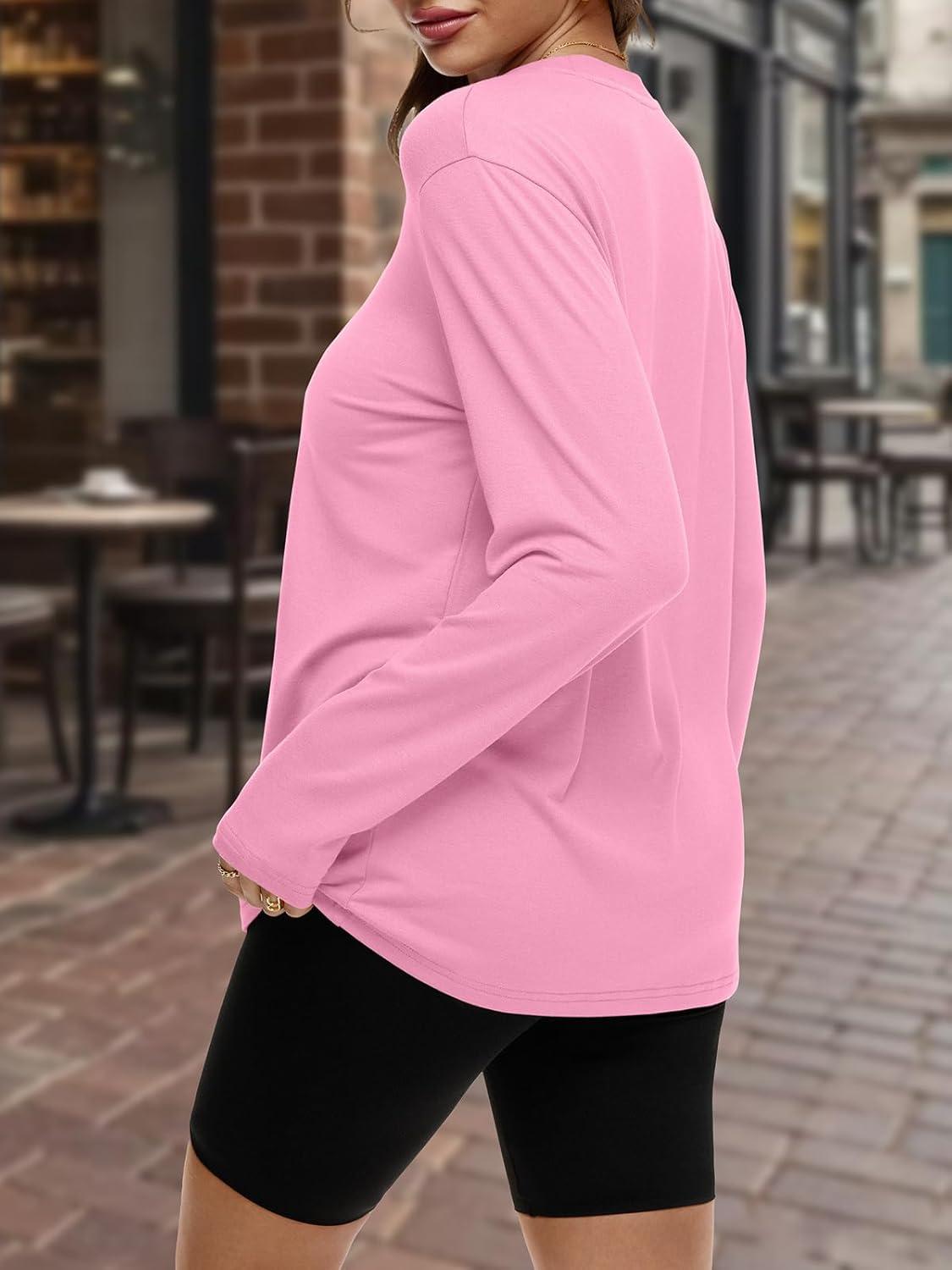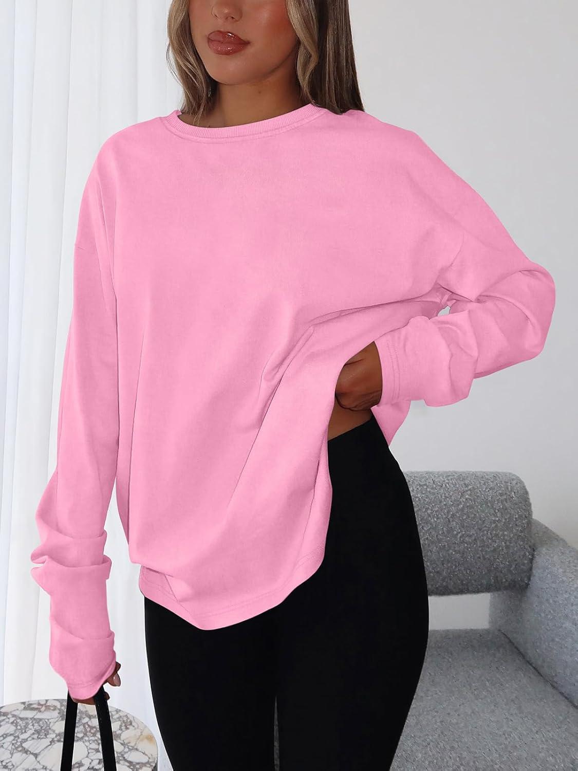 REORIA Womens Oversized Long Sleeve T Shirts 2025 Basic Crewneck Tee Fall Tops Casual Y2K Clothes(Pink)
