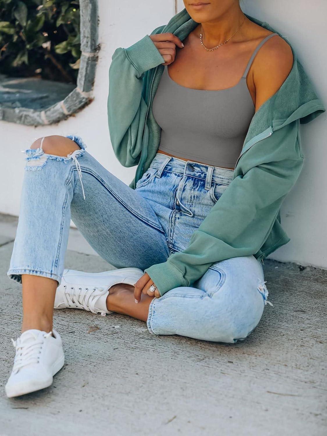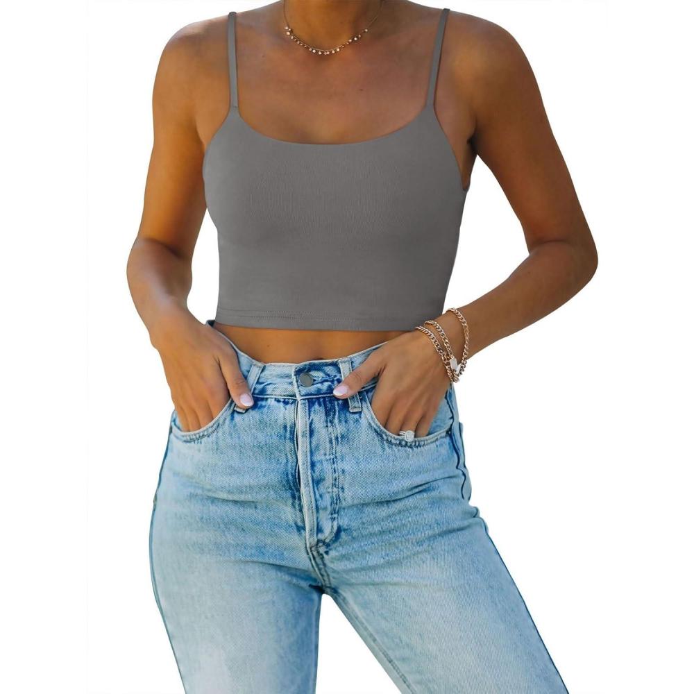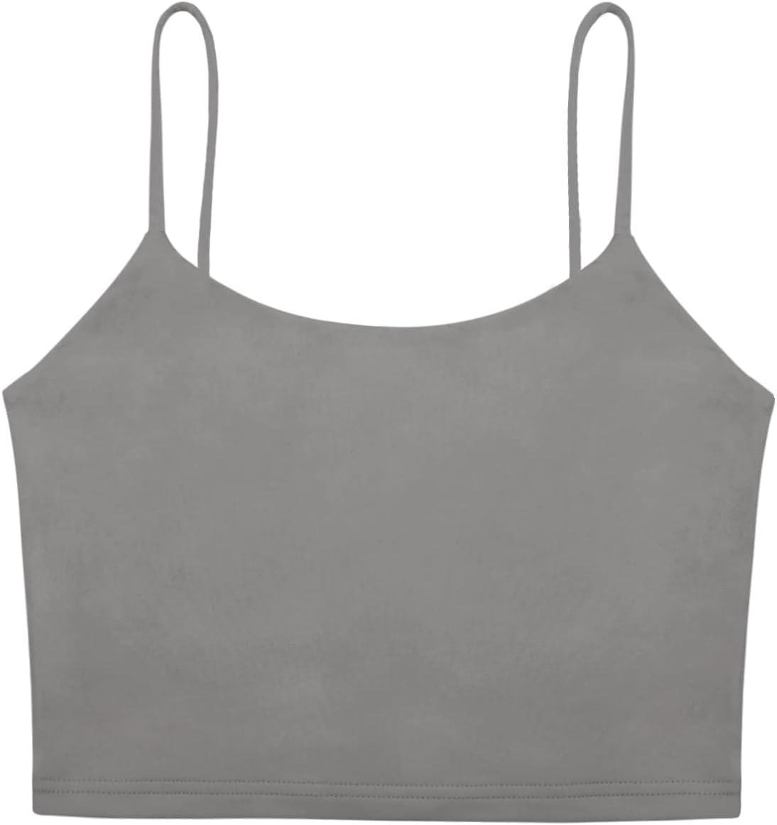 imageREORIA Womens Sexy Adjustable Spaghetti Strap Double Lined Seamless Camisole Tank Yoga Crop TopsDeep Grey
