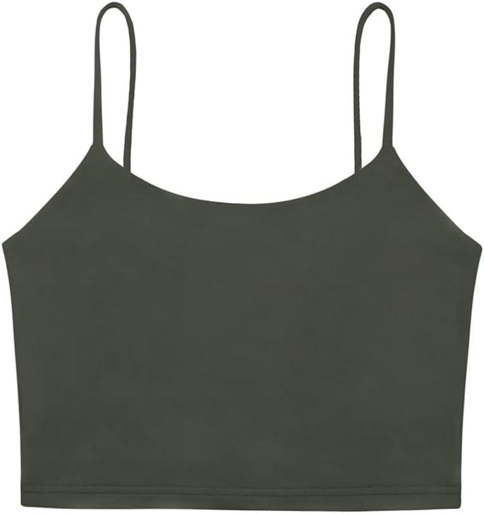 imageREORIA Womens Sexy Adjustable Spaghetti Strap Double Lined Seamless Camisole Tank Yoga Crop TopsGrey
