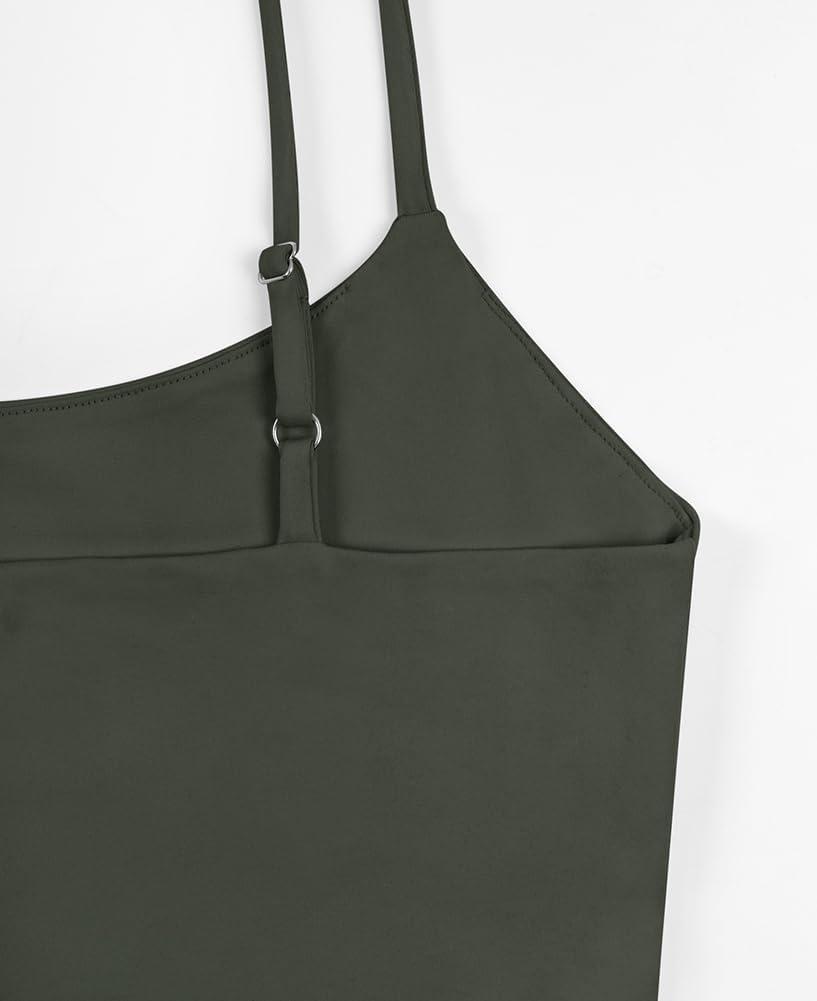 REORIA Women’s Sexy Adjustable Spaghetti Strap Double Lined Seamless Camisole Tank Yoga Crop Tops(Brown)