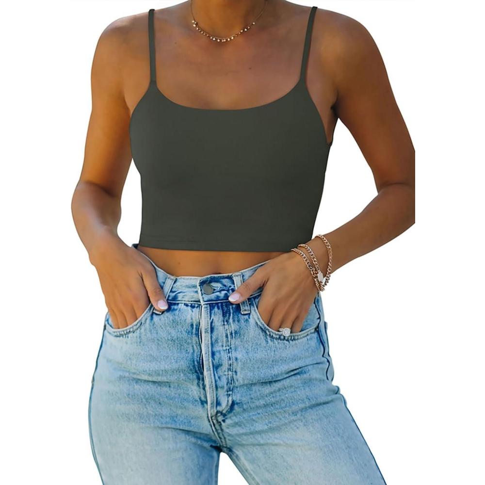 REORIA Women’s Sexy Adjustable Spaghetti Strap Double Lined Seamless Camisole Tank Yoga Crop Tops(Grey)