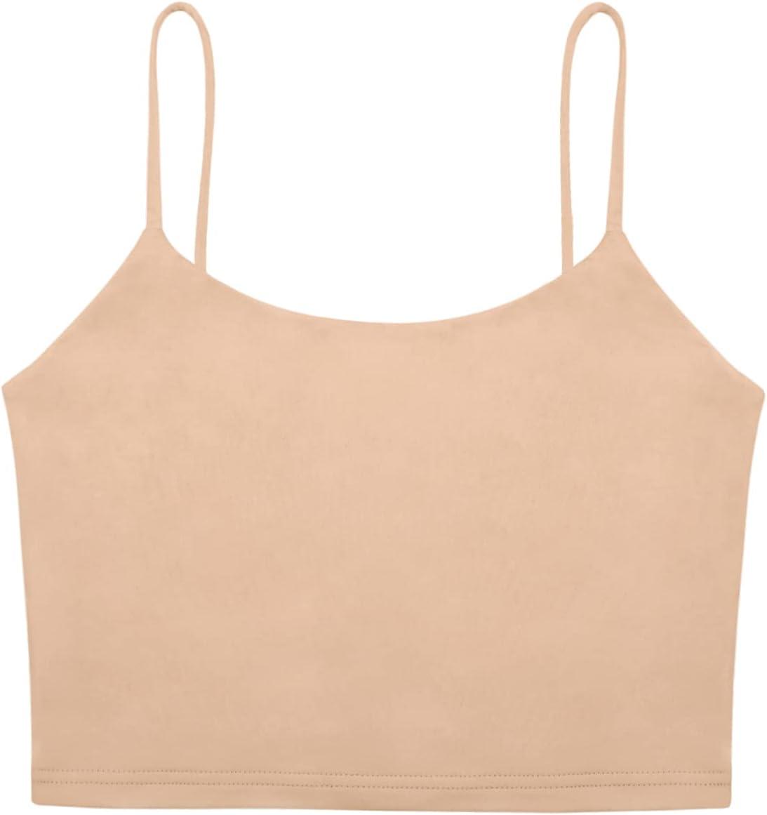 REORIA Women’s Sexy Adjustable Spaghetti Strap Double Lined Seamless Camisole Tank Yoga Crop Tops(Nude)