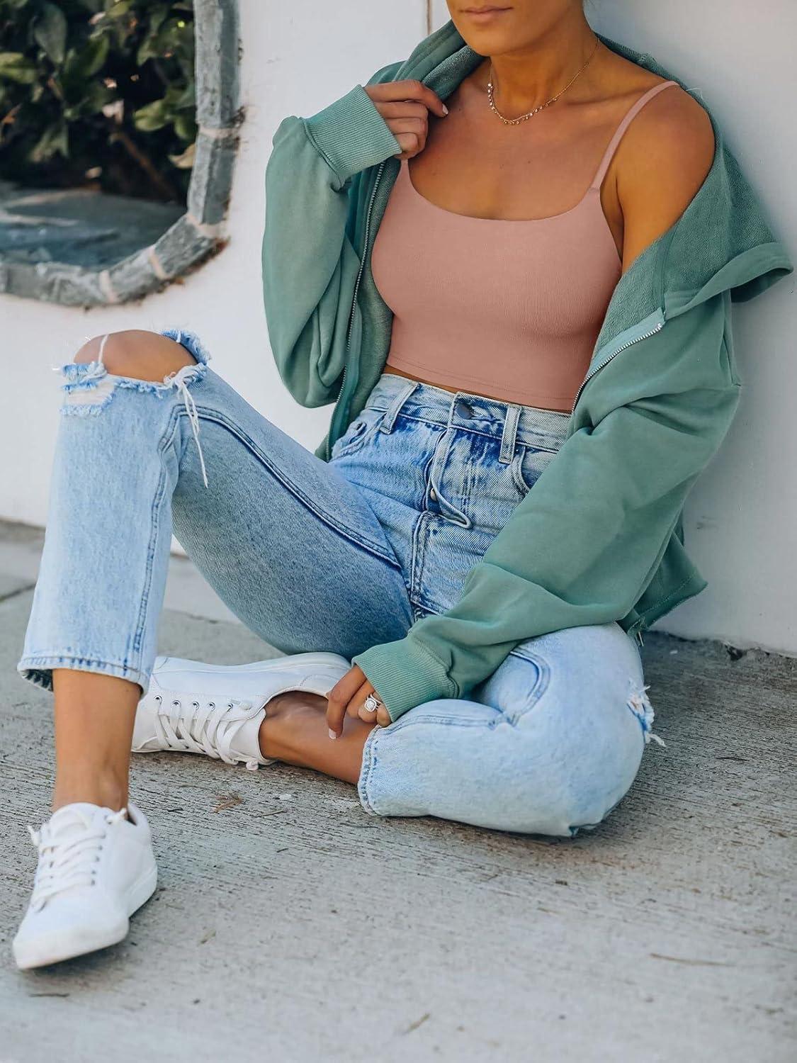 imageREORIA Womens Sexy Adjustable Spaghetti Strap Double Lined Seamless Camisole Tank Yoga Crop TopsSienna