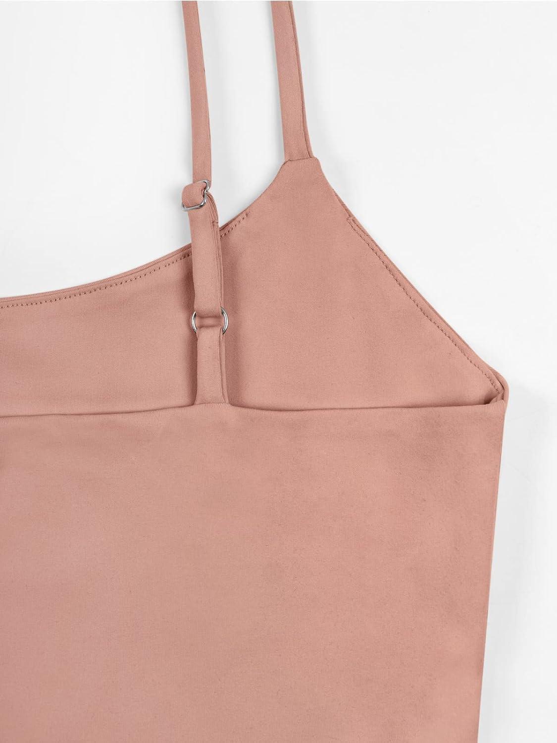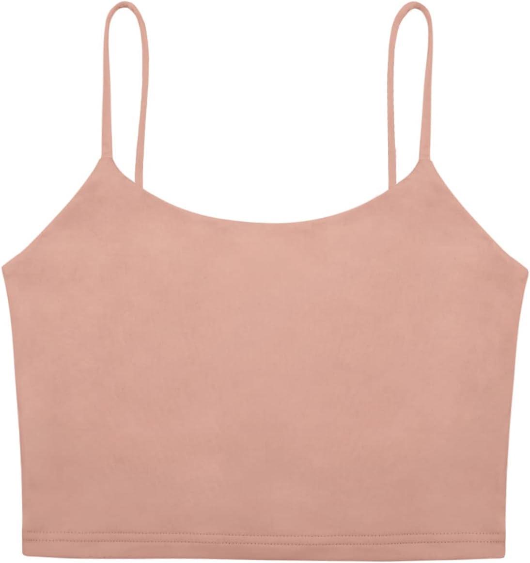 REORIA Women’s Sexy Adjustable Spaghetti Strap Double Lined Seamless Camisole Tank Yoga Crop Tops(Pink)