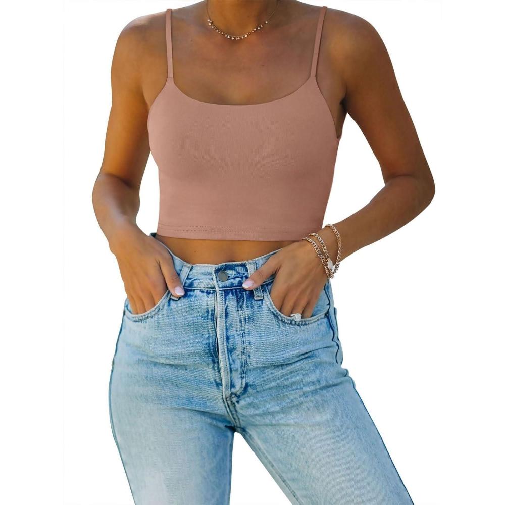 REORIA Women’s Sexy Adjustable Spaghetti Strap Double Lined Seamless Camisole Tank Yoga Crop Tops(Sienna)