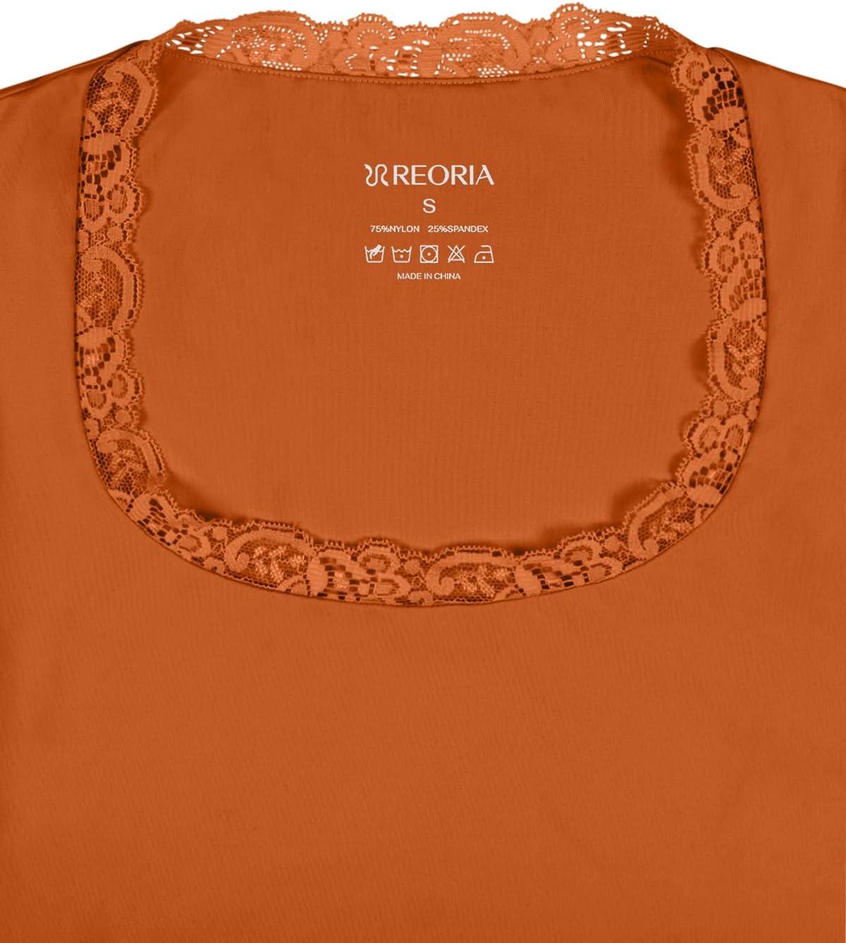 REORIA Women’s Sexy Lace Scoop Neck Long Sleeve Double Lined Layering Slim Bodysuit Tops(Harvest Pumpkin)