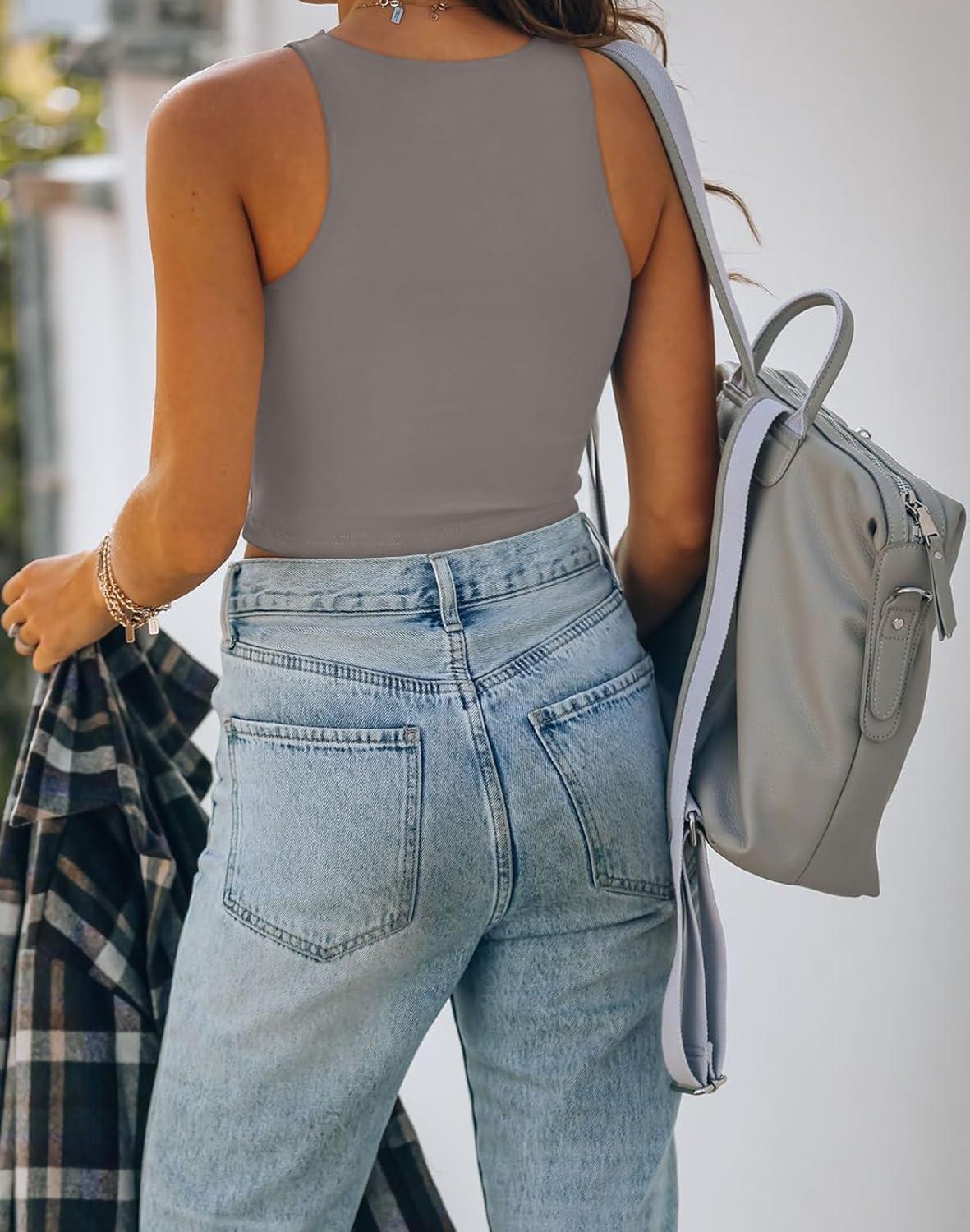 REORIA Women’s Sexy Sleeveless Racer Back Tank Tops Halter Neck Crop Tops(Deep Grey)