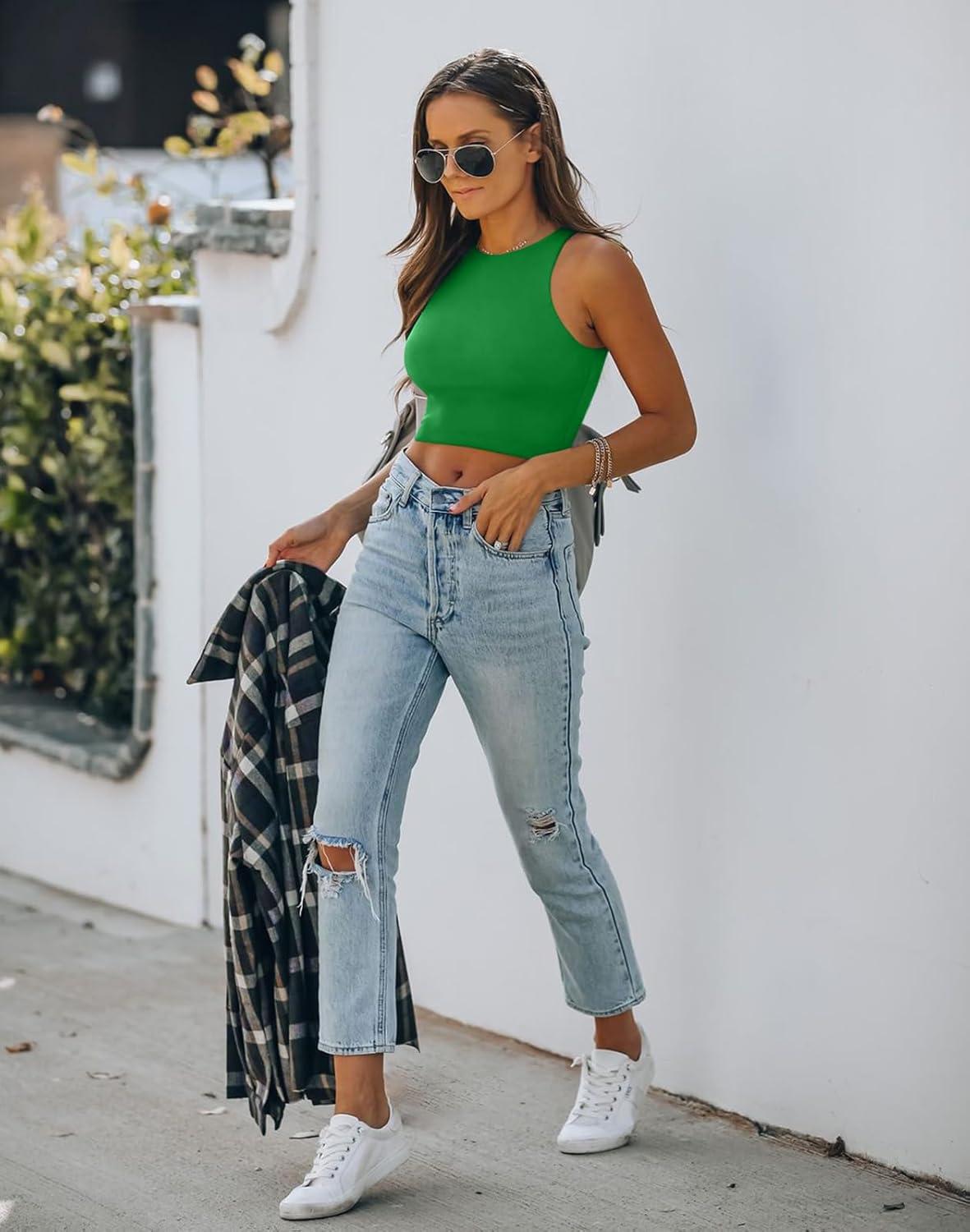 REORIA Women’s Sexy Sleeveless Racer Back Tank Tops Halter Neck Crop Tops(Green)