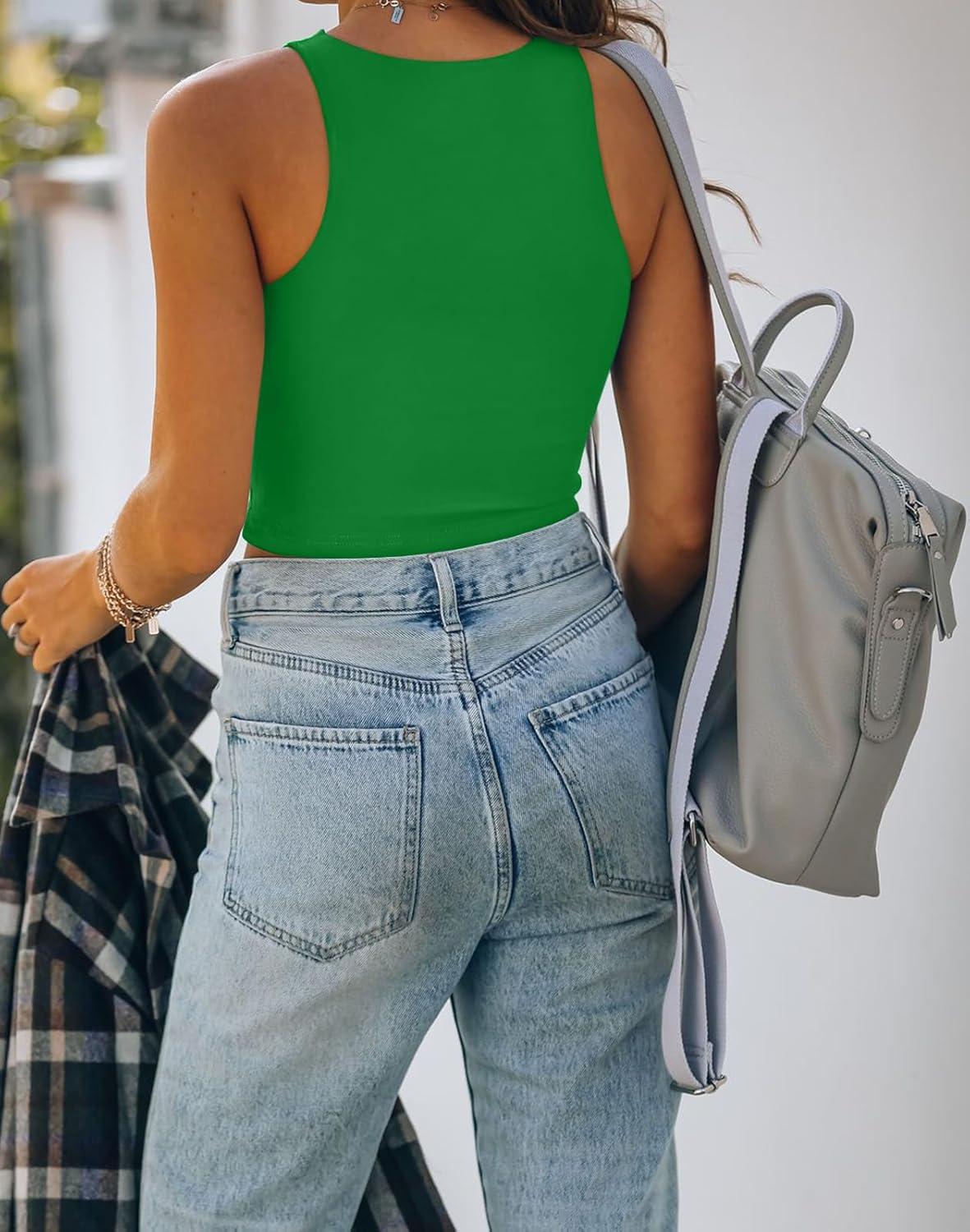 imageREORIA Womens Sexy Sleeveless Racer Back Tank Tops Halter Neck Crop TopsGreen
