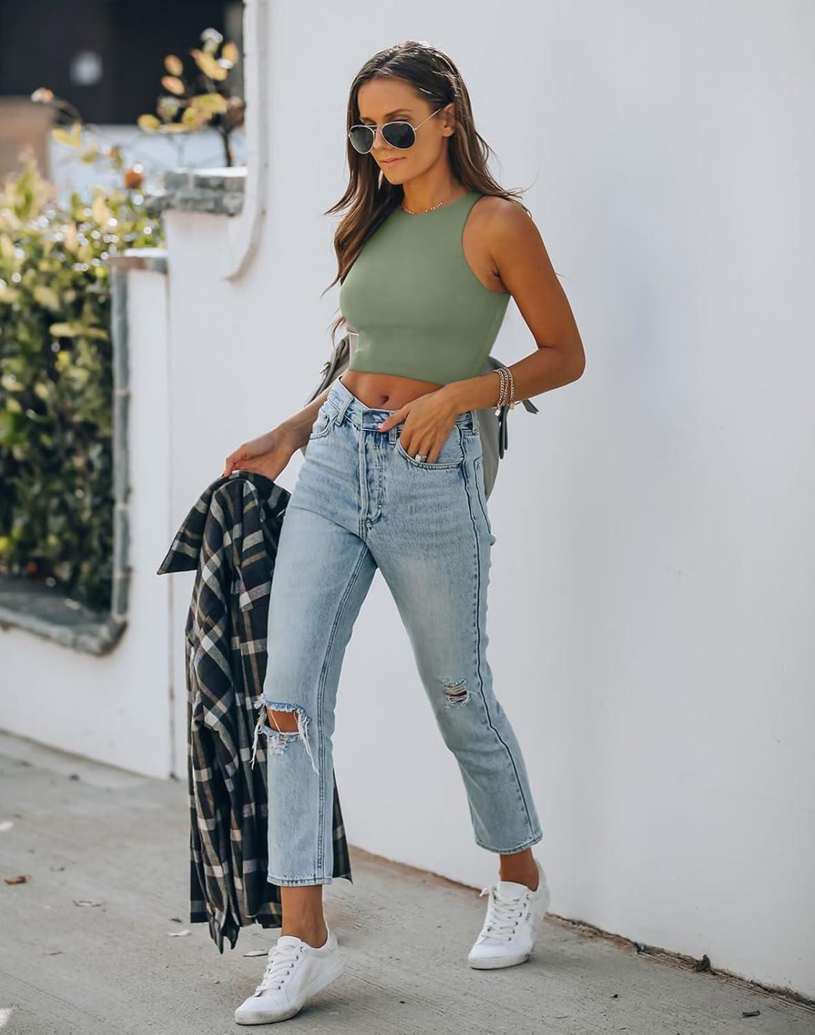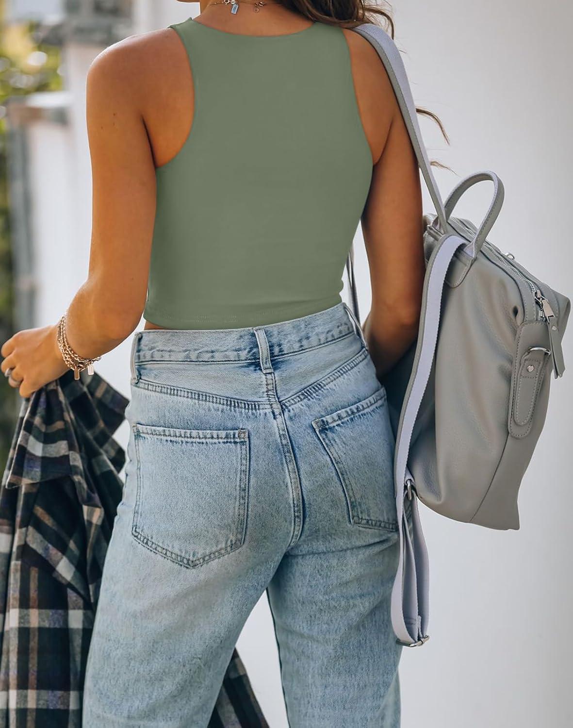 REORIA Women’s Sexy Sleeveless Racer Back Tank Tops Halter Neck Crop Tops(Olive Green)