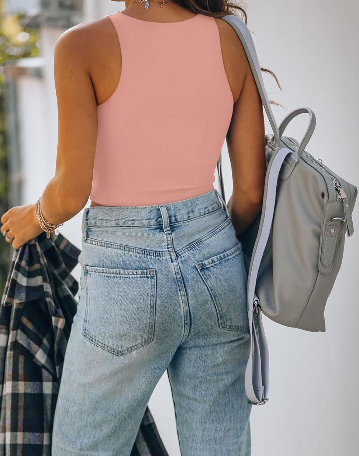 imageREORIA Womens Sexy Sleeveless Racer Back Tank Tops Halter Neck Crop TopsPink