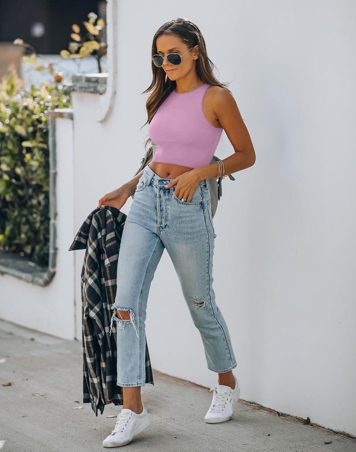 REORIA Women’s Sexy Sleeveless Racer Back Tank Tops Halter Neck Crop Tops(Violet)