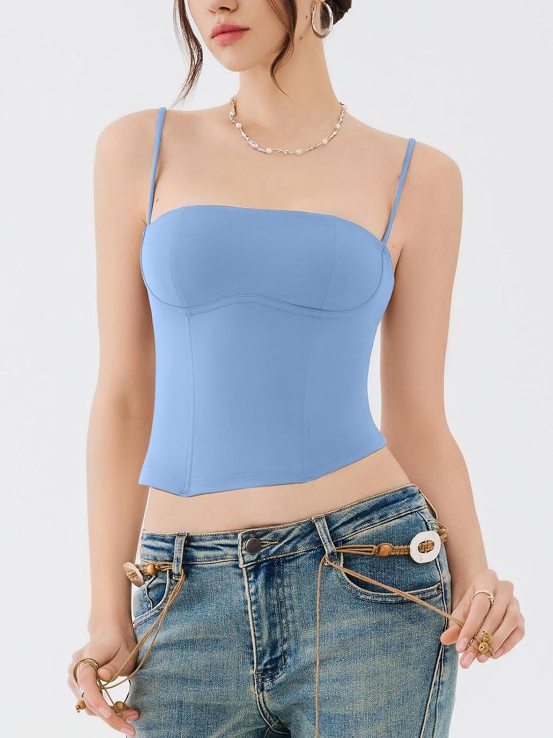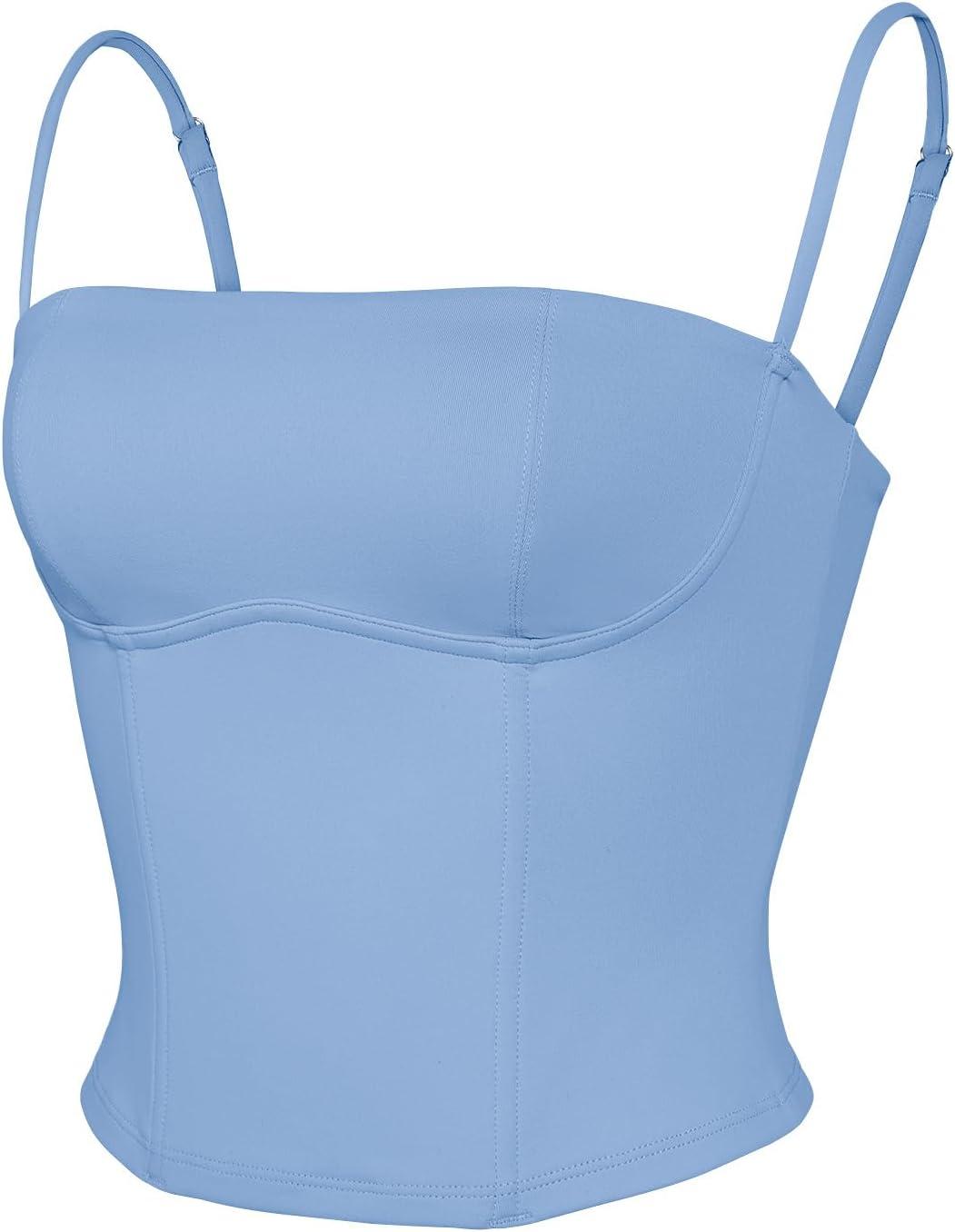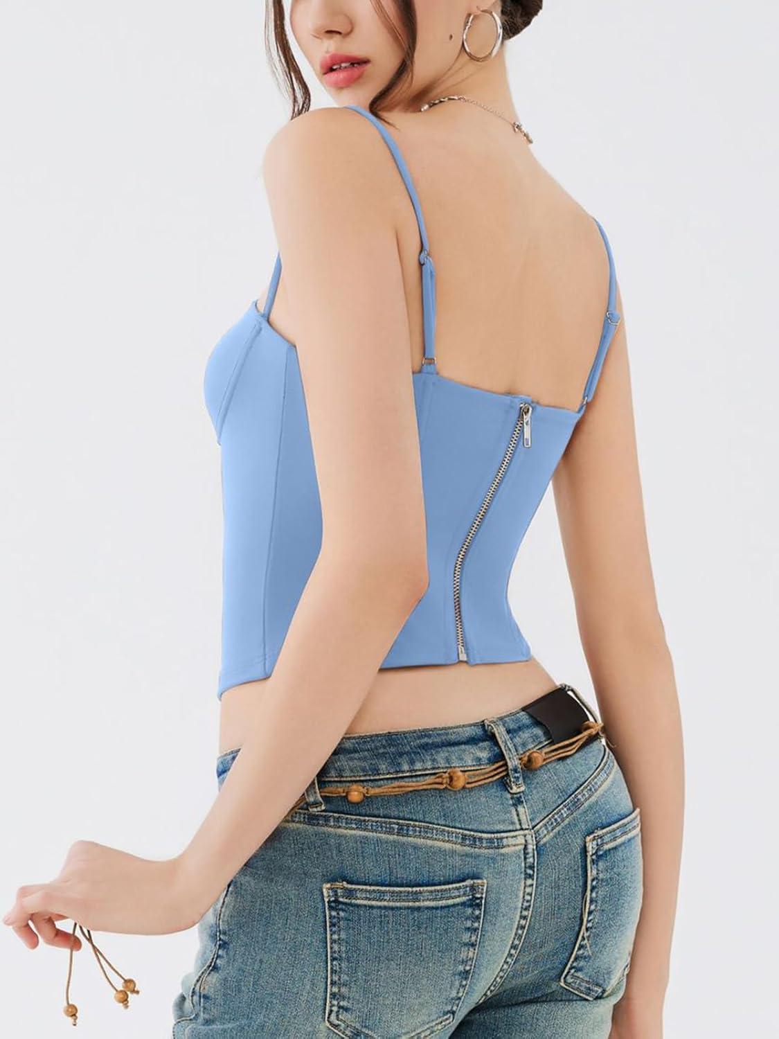 REORIA Womens Square Neck Adjustable Straps Backless Y2K Going Out Corset Crop Tops(Light Blue)