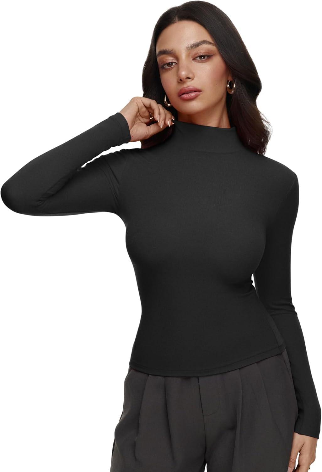 REORIA Women’s Turtleneck Tops Slim Basic Mock Neck Long Sleeve Shirts 2025 Fall Winter Layering Outfits(Black)