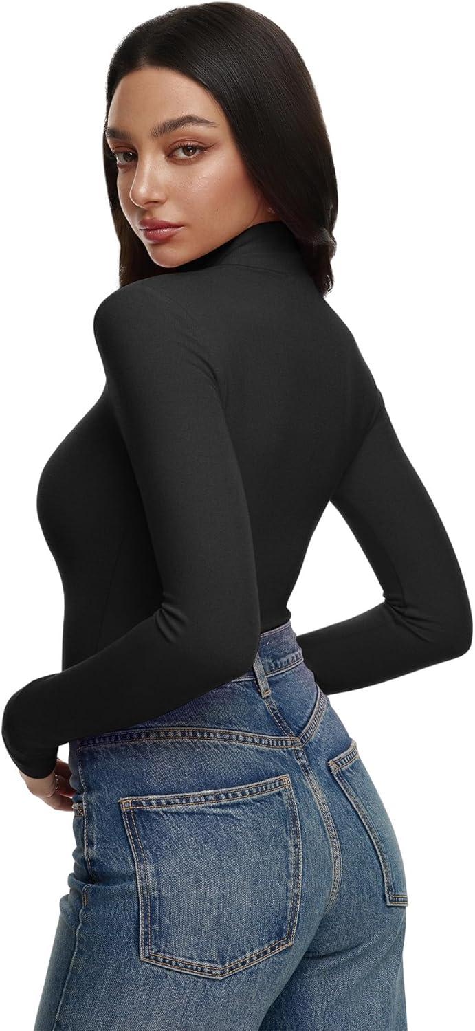 imageREORIA Womens Turtleneck Tops Slim Basic Mock Neck Long Sleeve Shirts 2025 Fall Winter Layering OutfitsBlack