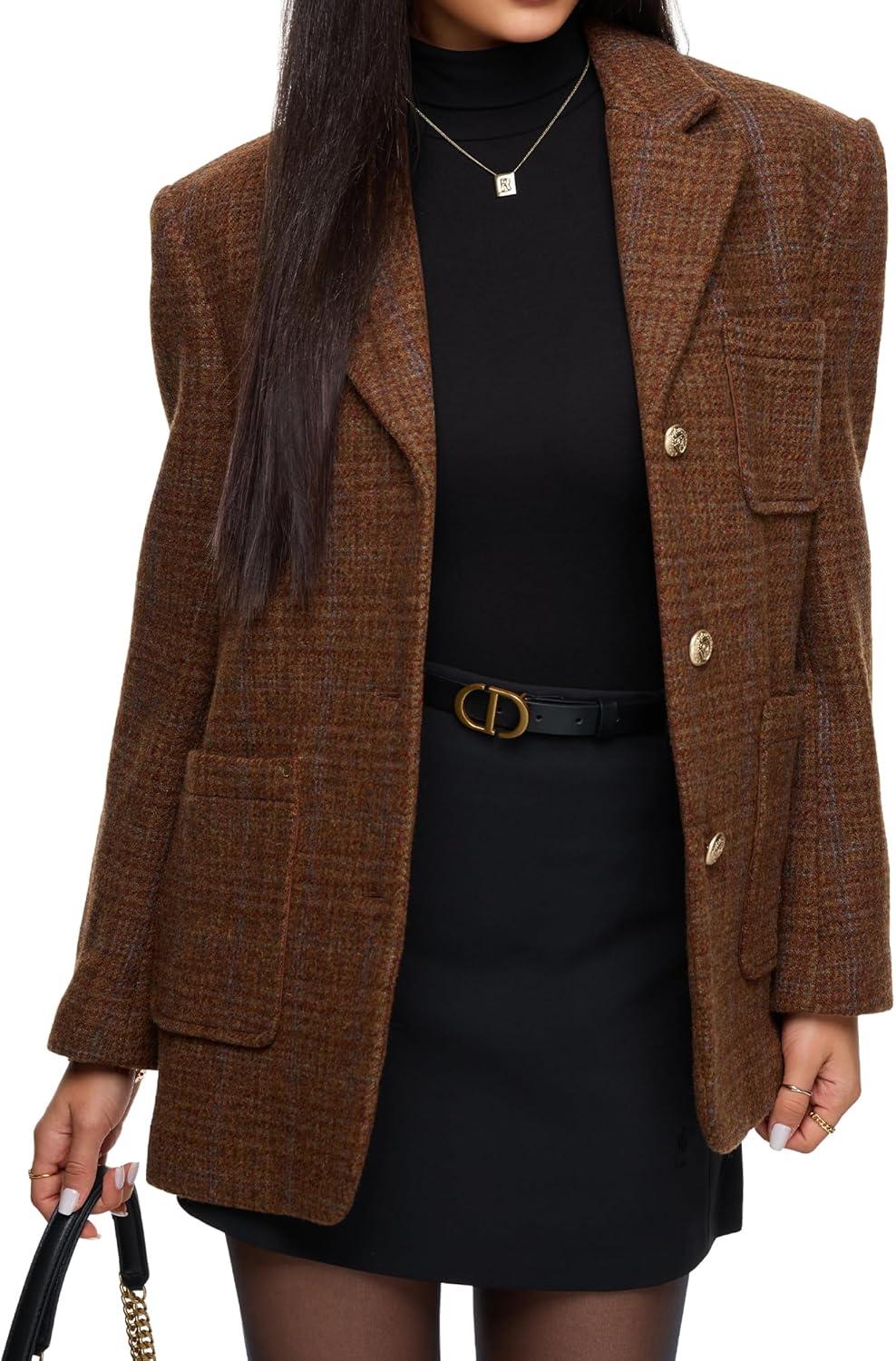 REORIA Womens Wool Blend Turtleneck Long Sleeve Basic Bodysuit Tops Fall Clothes(Shaved Chocolate)
