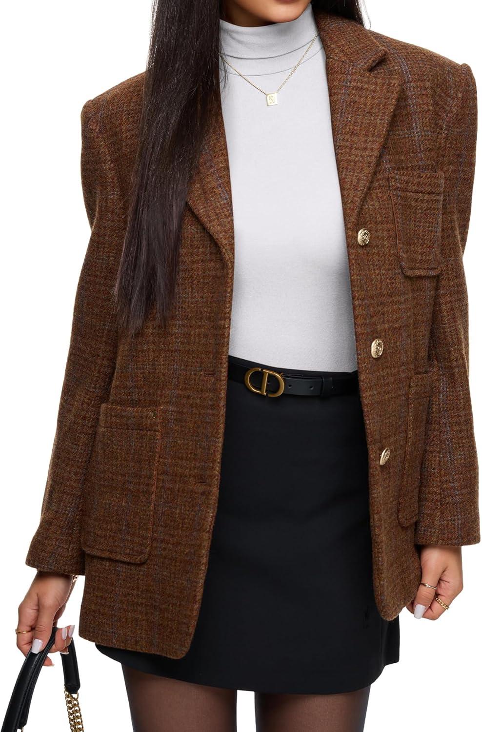 REORIA Womens Wool Blend Turtleneck Long Sleeve Basic Bodysuit Tops Fall Clothes(Dark Shadow)