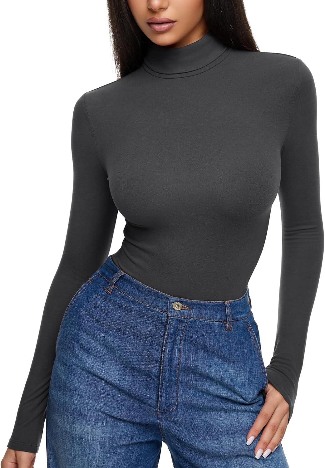 REORIA Womens Wool Blend Turtleneck Long Sleeve Basic Bodysuit Tops Fall Clothes(Dark Shadow)