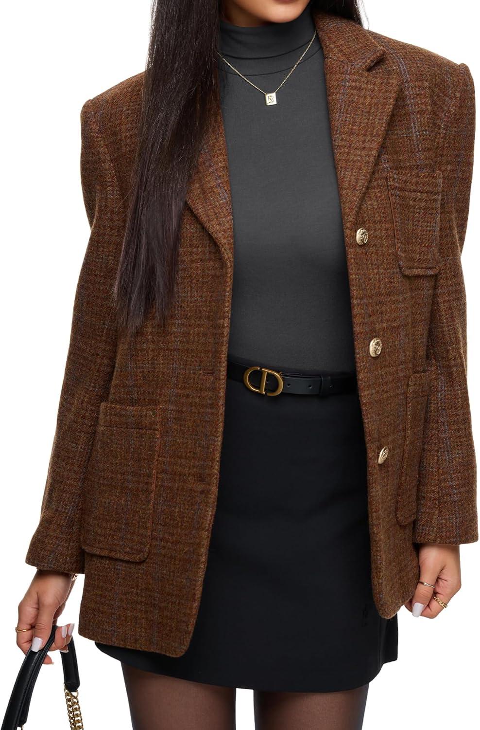 REORIA Womens Wool Blend Turtleneck Long Sleeve Basic Bodysuit Tops Fall Clothes(Mocha Mousse)